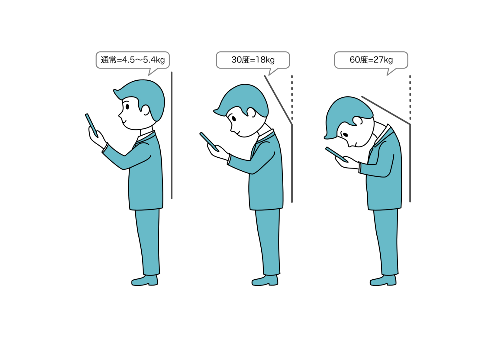 前かがみの姿勢になるほど、その重さが首や肩に大きくかかります。